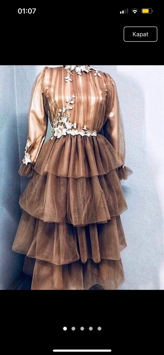 Uzun Kollu Bej Vintage Kat Kat Abiye Elbise