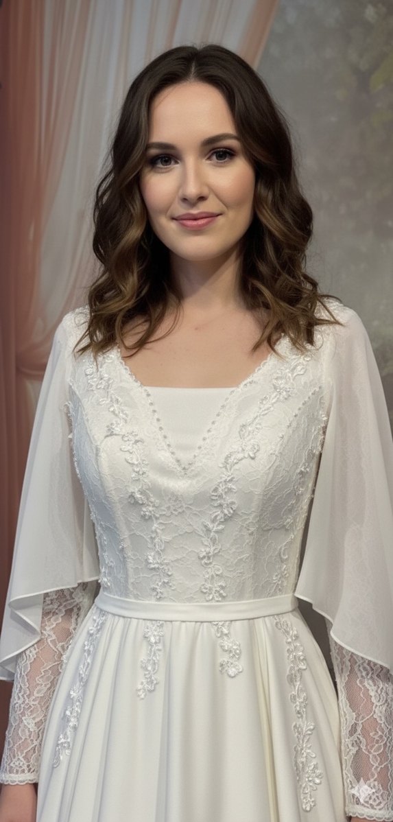 Uzun Kollu Beyaz A Kesim Düğün Elbisesi