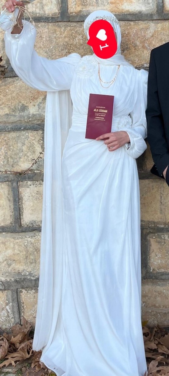 Uzun Kollu Beyaz A Kesim Tesettür Nikah elbisesi