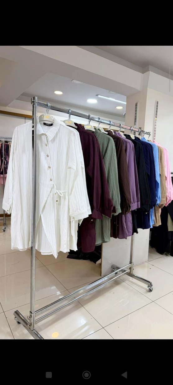 Pamuk kumaştan, uzun kollu, yüksek yakalı, düğmeli ve bağlamalı gevşek kesim beyaz kadın gömleği. Günlük rahat kullanım için uygundur.