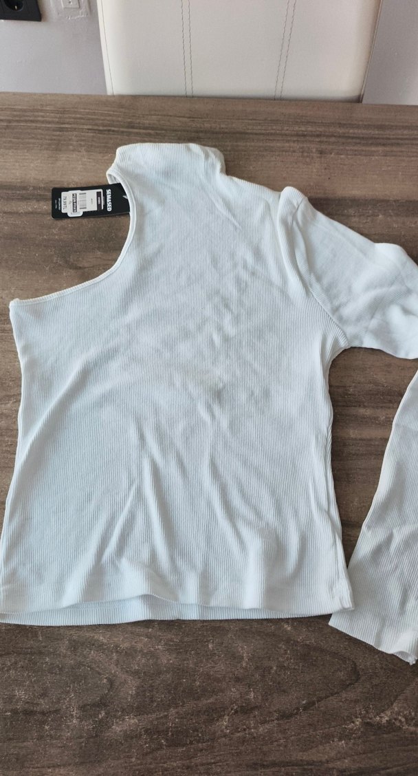 Pamuk kumaştan yapılmış, uzun kollu beyaz balıkçı yaka, vücuda oturan rahat bir tişört. Günlük dış mekan kullanımı için uygundur.