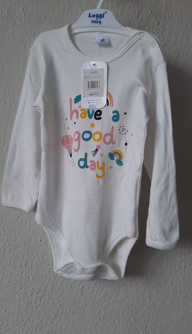 Uzun Kollu Beyaz Baskılı Bebek Body