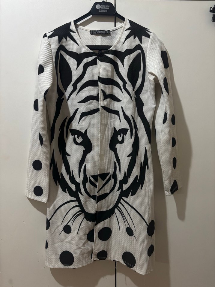 Uzun Kollu Beyaz Baskılı Kadın Ceket