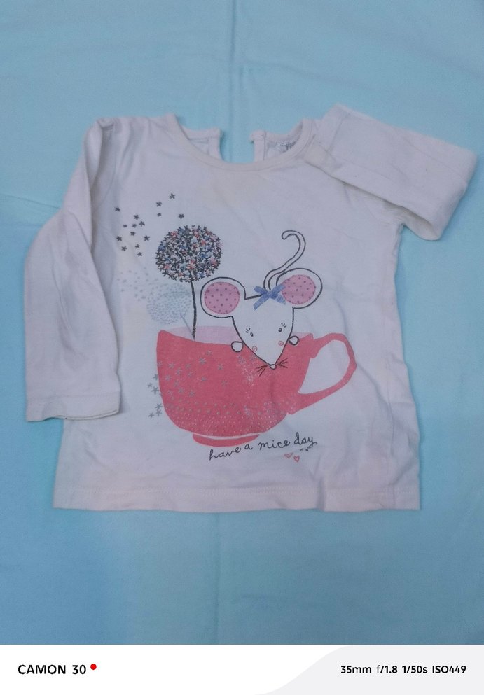 Uzun Kollu Beyaz Baskılı Kız Tişörtü