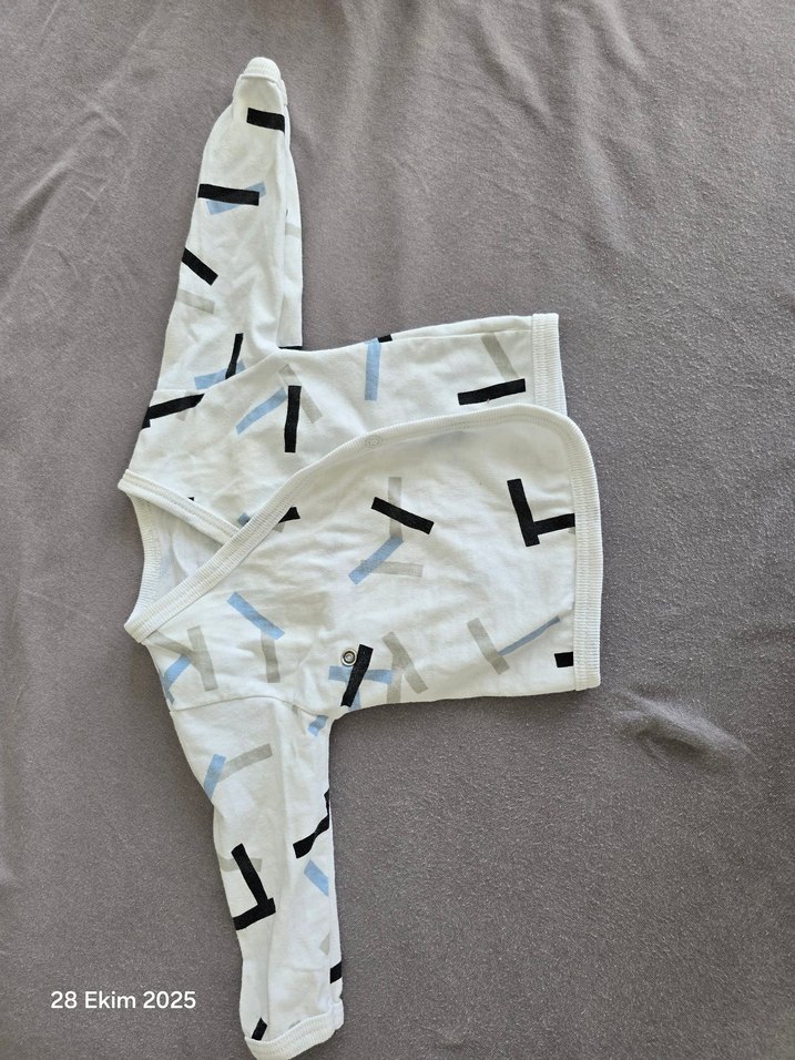 Uzun kollu, beyaz renkte bebek hastane kıyafeti. herhangi bir sorunu yok bir defa kullanıldı.