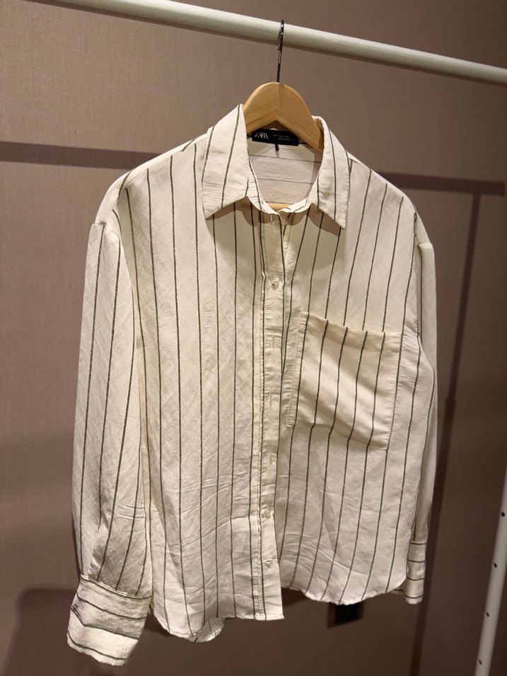 Uzun kollu, beyaz gömlek, gri dikey çizgiler ve yakalı tasarıma sahiptir. Düzenli kesim ve günlük rahat stil sunar.