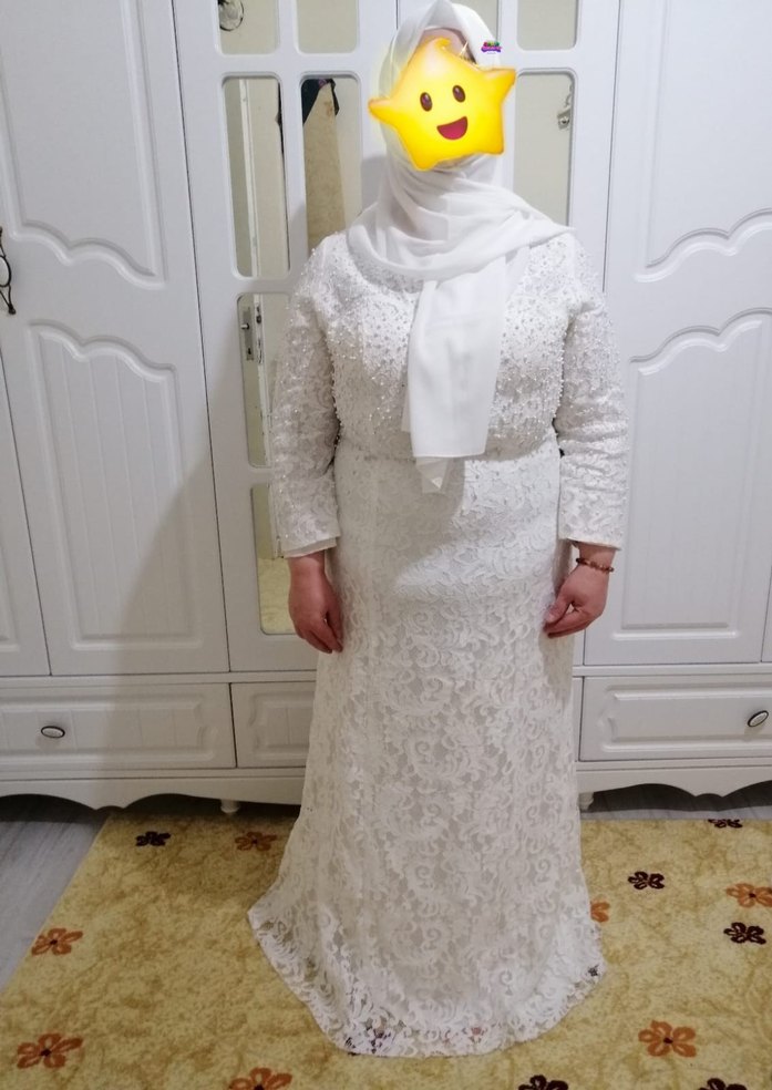Uzun kollu, tekne yaka ve dantel kumaştan yapılmış, klasik ve modern tasarımlı uzun kesim gelinlik. Sadece bir kez giyildi. İNDİRİMLERE AÇIĞIM !