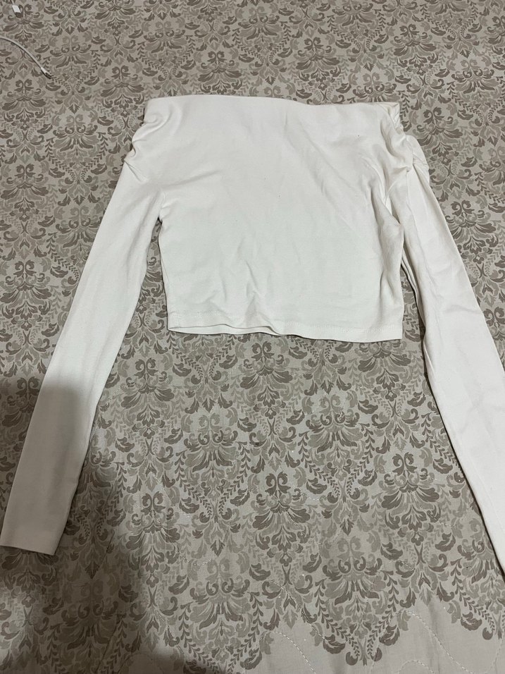 Uzun Kollu Beyaz Dar Kesim Kadın Bluz