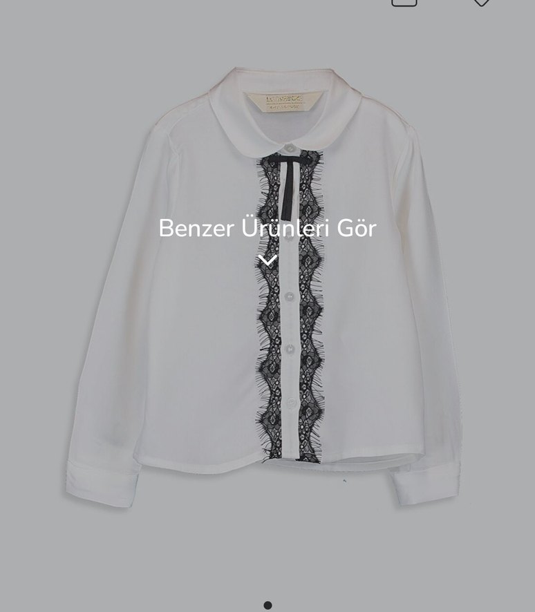 Uzun kollu, yakalı beyaz gömlek, önünde siyah dantel detaylı düğmeli kapama ile rahat kesim sunar.