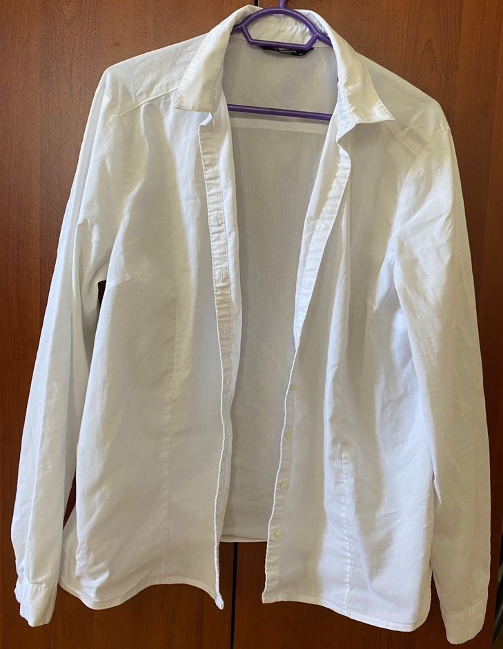 Uzun kollu, beyaz kadın gömleği. Normal boy ve regular fit kesimlidir. Lcw 42 beden.