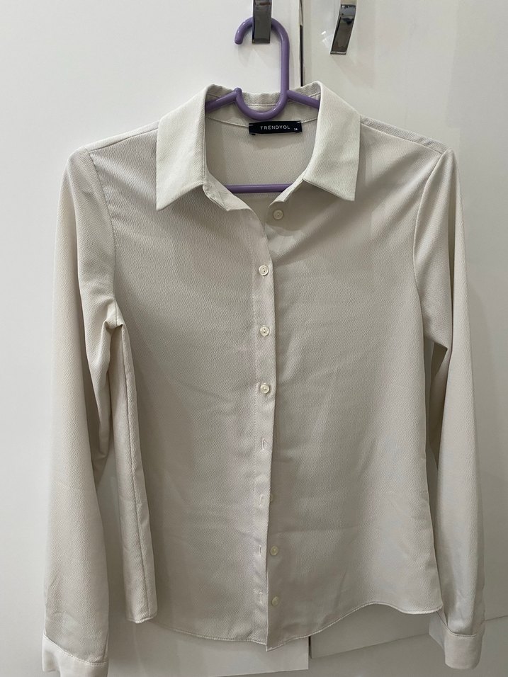 Uzun kollu, yakalı ve düğmeli beyaz kadın gömleği, normal kesim ve sentetik kumaştan üretilmiştir. Ofis ve günlük şıklık için uygundur. Hiç kullanılmadı temizdir