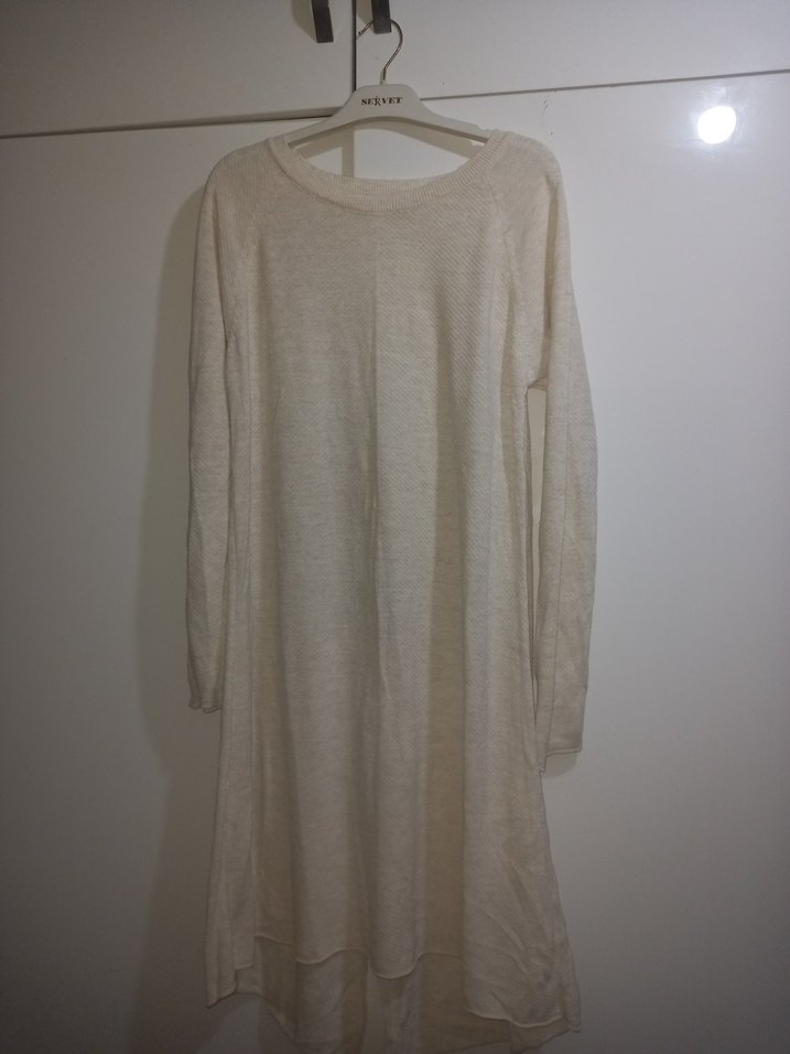 Yumuşak keten kumaştan uzun kollu, yuvarlak yakalı, bol kesim beyaz triko Düz ve rahat tarzıyla günlük kullanıma uygundur.