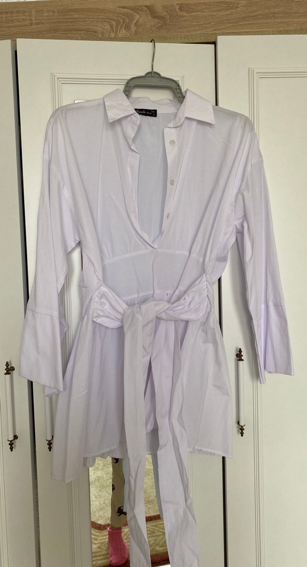 Uzun Kollu Beyaz Kemerli Kadın Gömlek