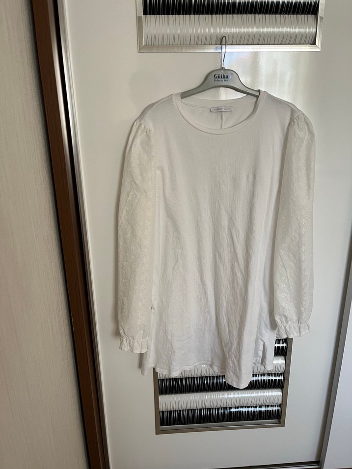 Uzun Kollu Beyaz Keten Bluz