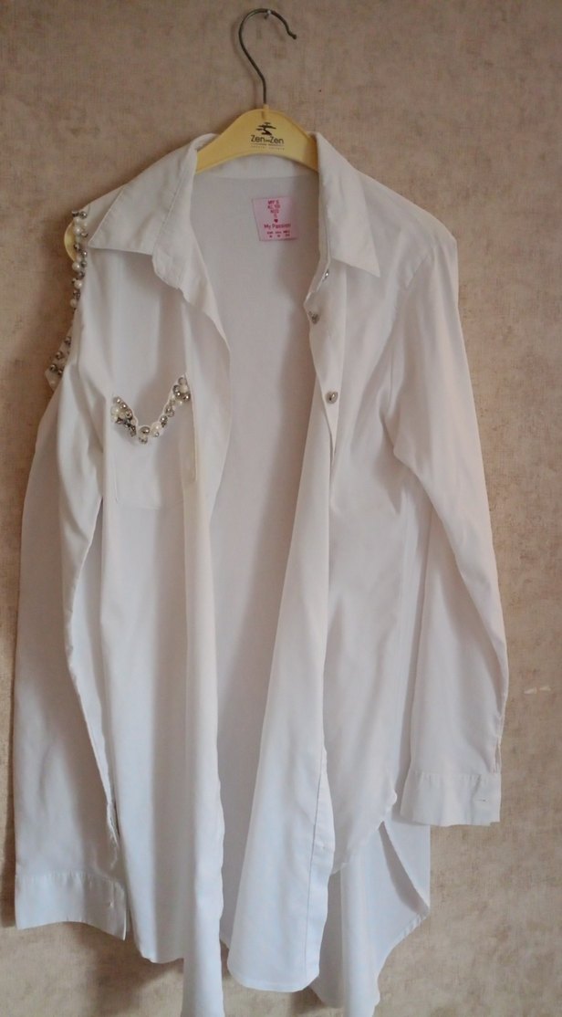 Uzun boylu beyaz keten kadın gömleği, yakalı ve düğmeli. Salaş kesimi ve uzun kollarıyla trend sokak stili için uygun. ✨