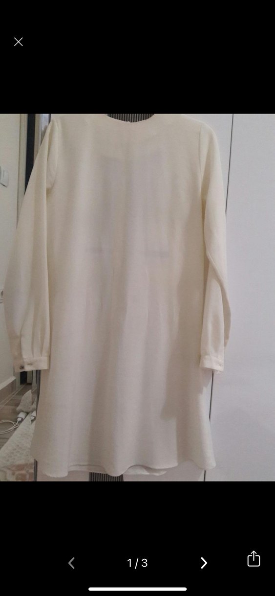 Uzun Kollu Beyaz Midi Kadın Tunik
