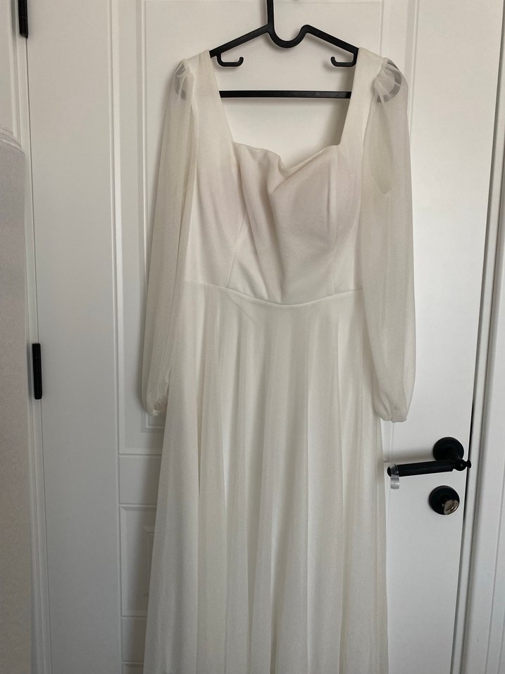 Uzun Kollu Beyaz Modern nişan elbisesi