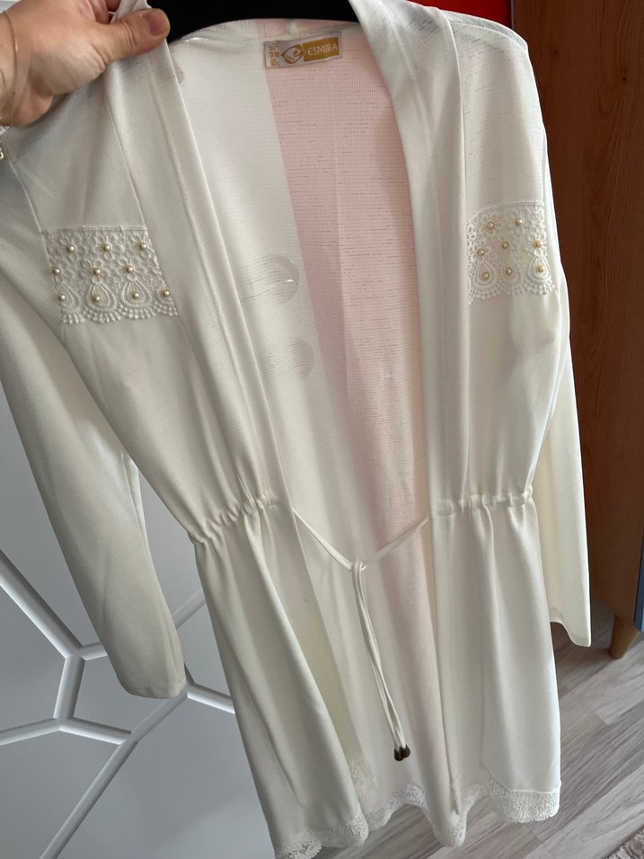 Uzun Kollu Beyaz Nakışlı Bohem Kadın hırka veya sabahlık