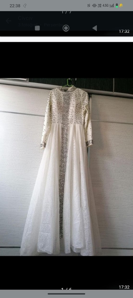 Uzun Kollu Beyaz Nakışlı Kadın nikahlik