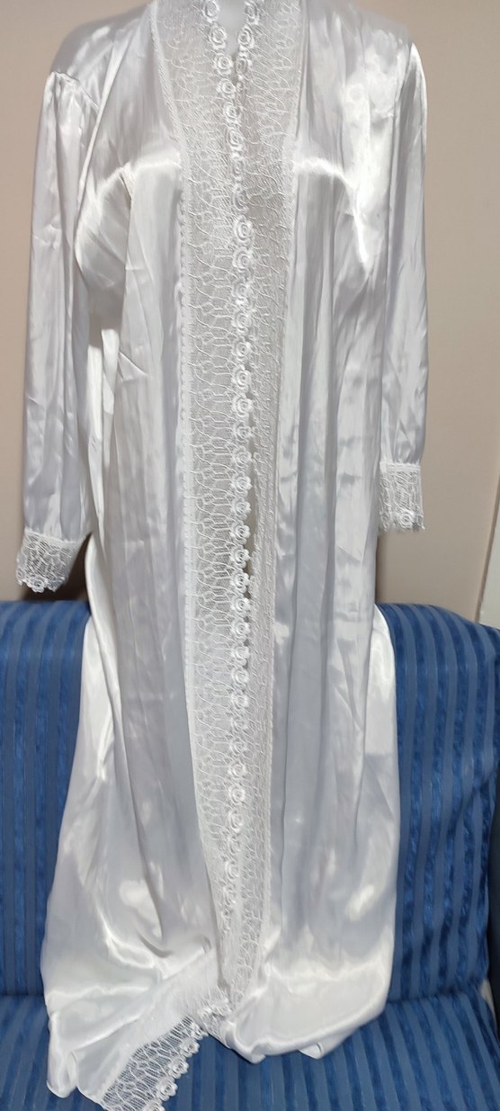 #Sabahlık Uzun Kollu Beyaz Nakışlı Kadın sabahlık
