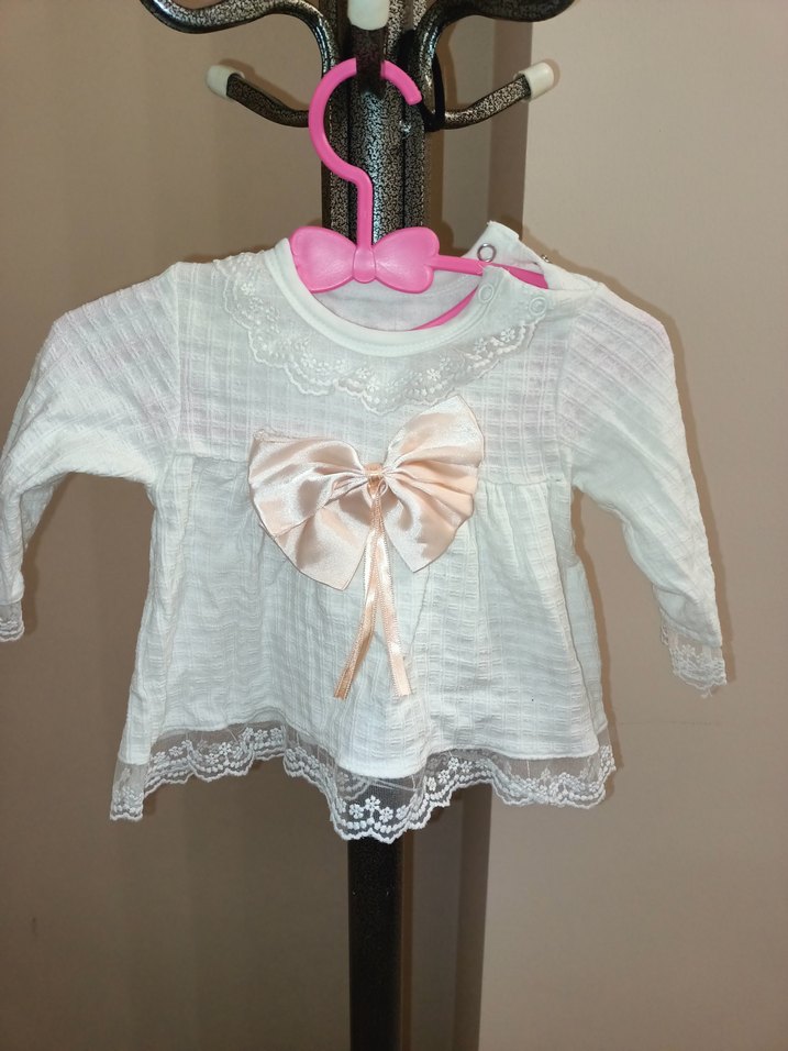 Uzun Kollu Beyaz Nakışlı Kız Elbisesi 2 alt 1 üst