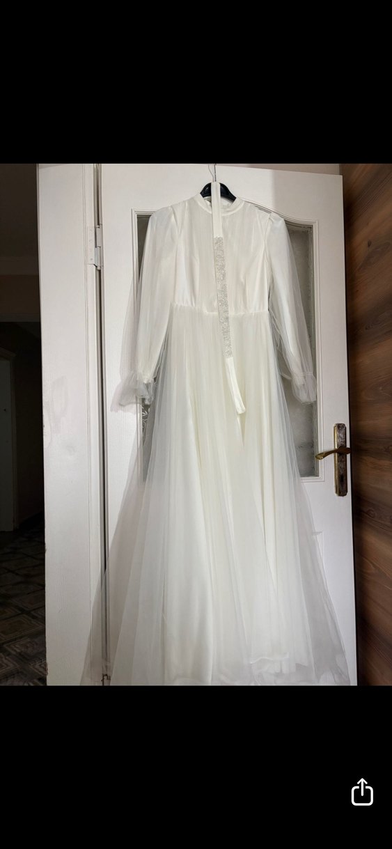 Uzun Kollu Beyaz nikah elbisesi