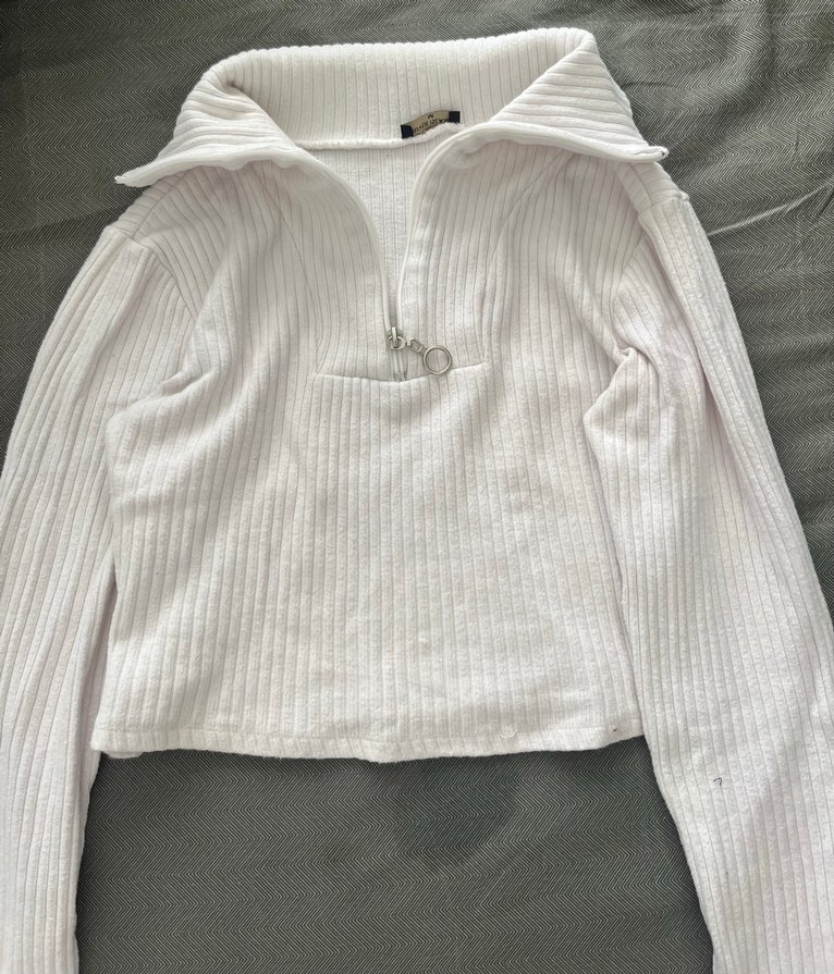 Uzun kollu, krem örgü triko. Yaka kısmında fermuar ve fit kesim. Yumuşak keten kumaştan, günlük rahat ve şık sokak stiline uygun.