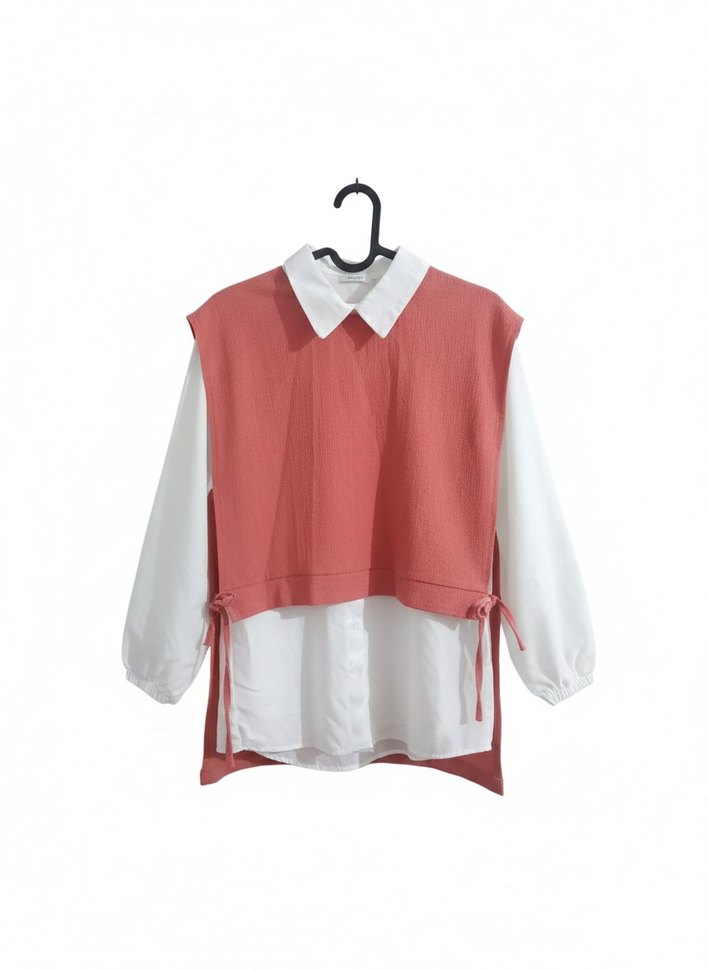 Yumuşak pamuktan üretilmiş, uzun kollu, bol kesim ve yuvarlak yakalı beyaz bluz takımı. Günlük kullanıma uygun, pastel tonlu dış katmanla şık bir görünüm sunar.