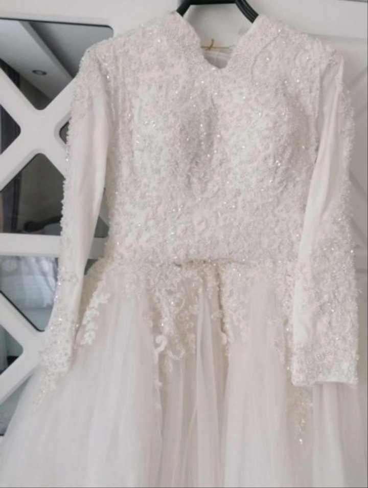 abiye fiyatına! Uzun kollu, V yakalı ve işlemeli detaylara sahip, klasik ve modern tarzda kesim beyaz prenses gelinlik 40 42 beden uyumlu