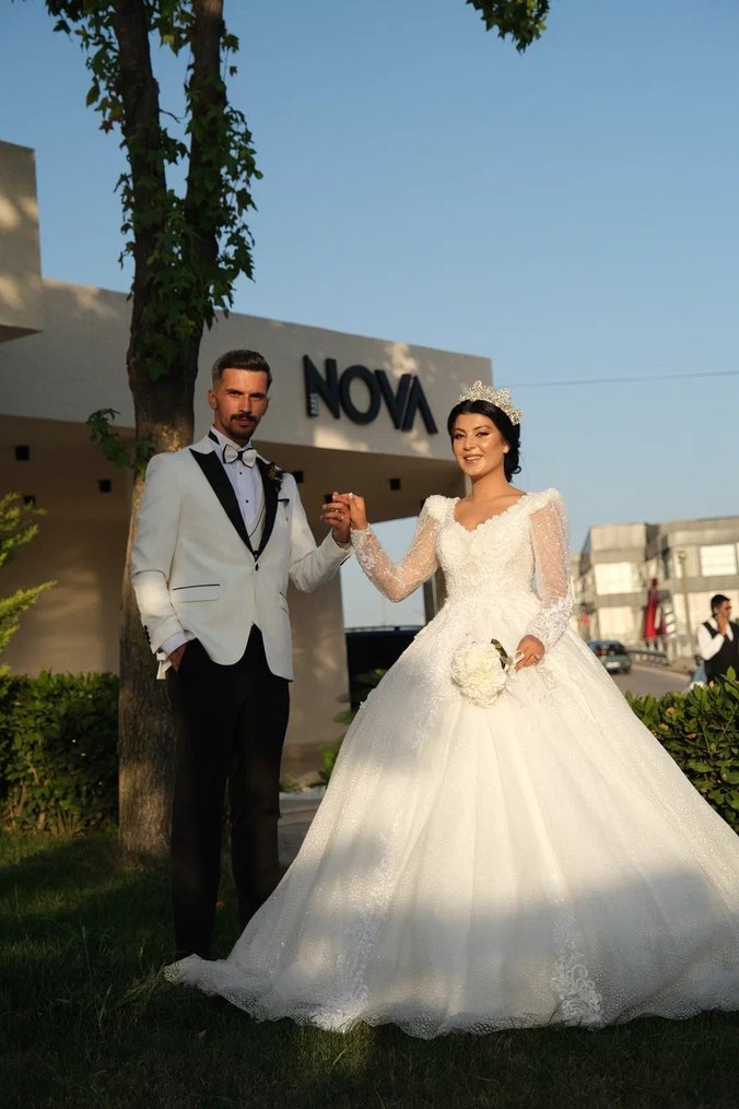 Uzun kollu, beyaz prenses gelinlik, modern klasik tarzda, notched lapel yakalı. 36-38 beden uyumludur arkası ipli olduğu için istenildiği gibi genişletip daraltılabilir tüm detayları ile her açıdan fotoğrafını koymaya çalıştım. kuru temizlemesi yapılmadığı için bu fiyata koydum hiçbir hasar hiçbir problemi yoktur. kendim çok severek giydim ve bana çok şans getirdi umarım yeni sahibine de öyle olur ✨