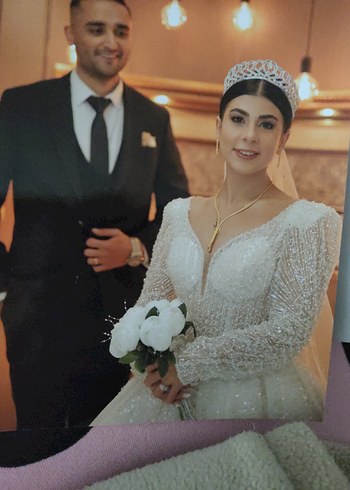 Bu uzun kollu, beyaz prenses gelinlik, notlu yaka ve modern klasik stilde, 38 40 bedene kadar olur arkası ipli ağır ve taşlıdır.paraya ihtiyacım olduğu için bu kadar uygun.. çiçeği yanında hediye gondericem