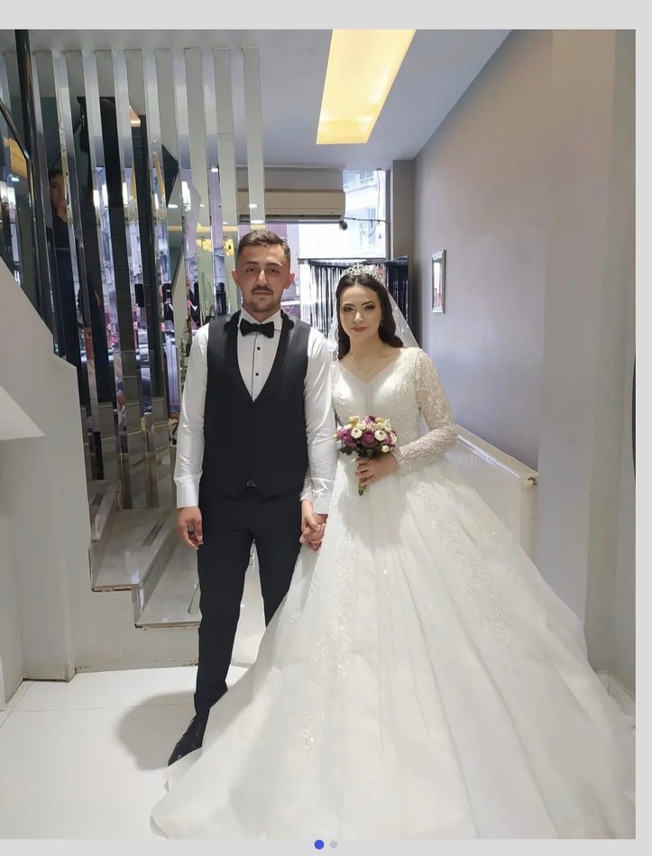 Beyaz prenses gelinlik, uzun kollu ve notched lapel yakaya sahiptir. Modern klasik tarzda, düzenli kesim ile şık bir duruş sunar.