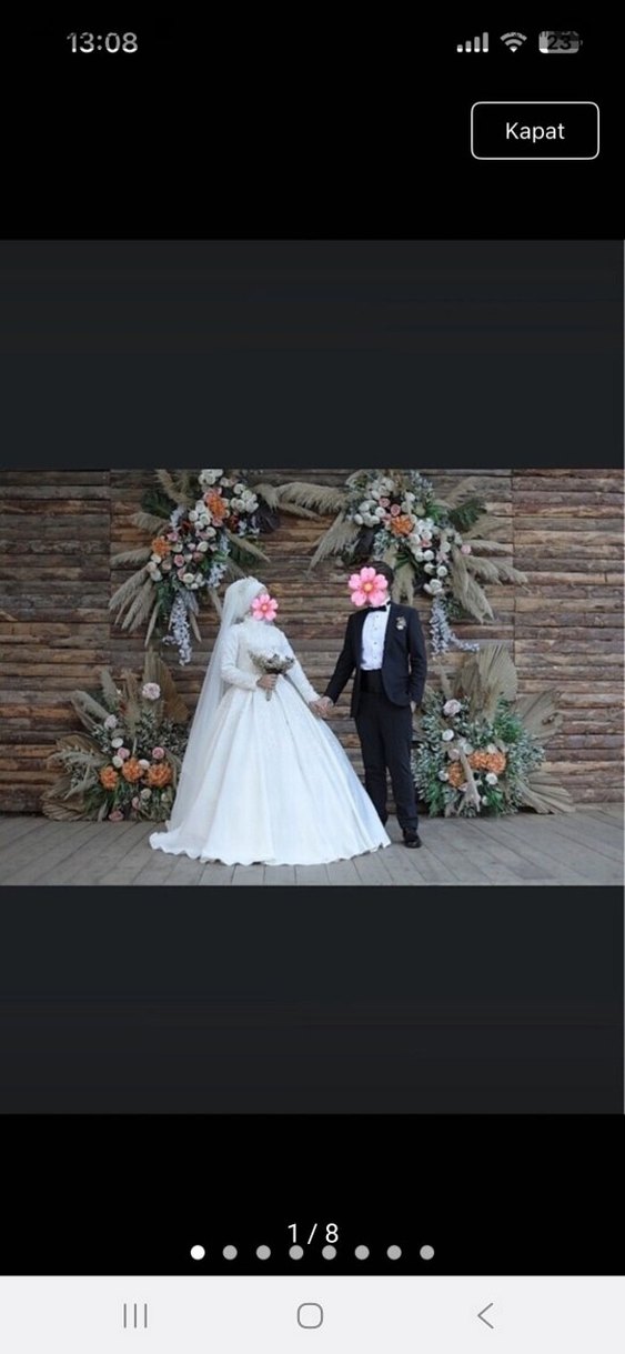 Uzun kollu, kesimli, beyaz prenses gelinlik, sade ve klasik tarzda, gotik dokunuşlu, modest tasarıma sahiptir.