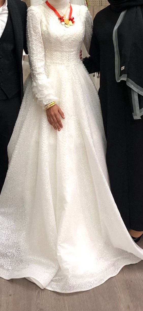 Uzun Kollu Beyaz Prenses Gelinlik