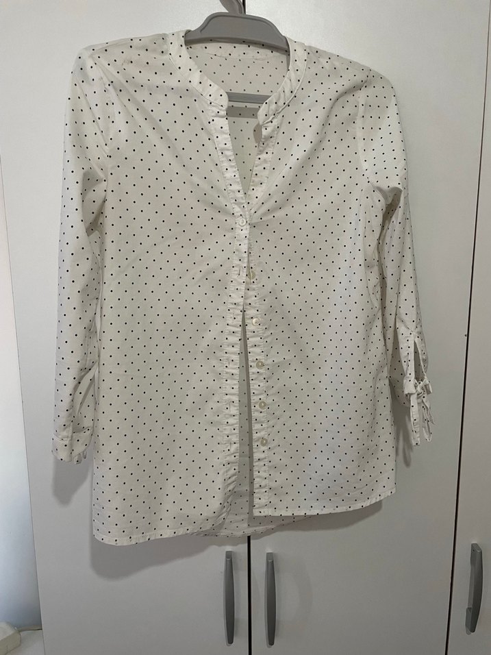 Uzun Kollu Beyaz Puantiyeli Kadın Gömlek