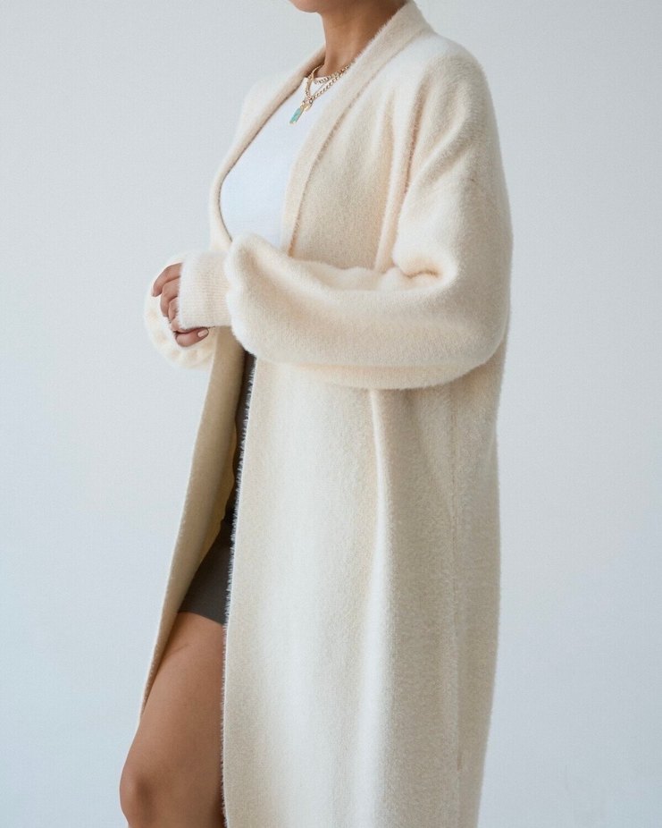Uzun Kollu Beyaz Rahat Hırka