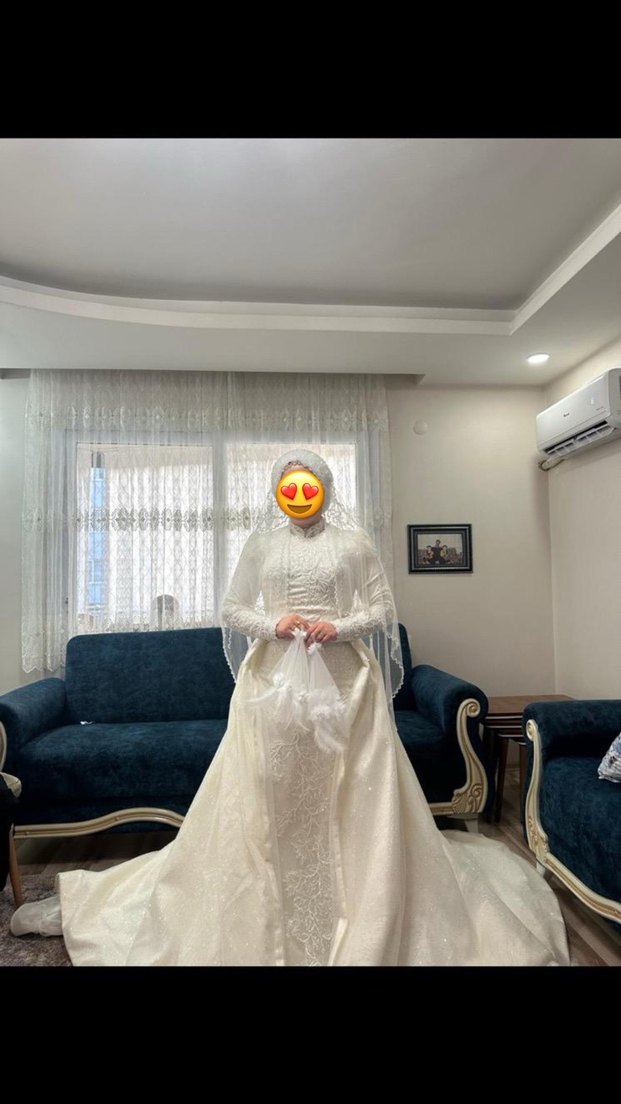 Uzun Kollu Beyaz tesettür balık gelinlik demonte kuyruk