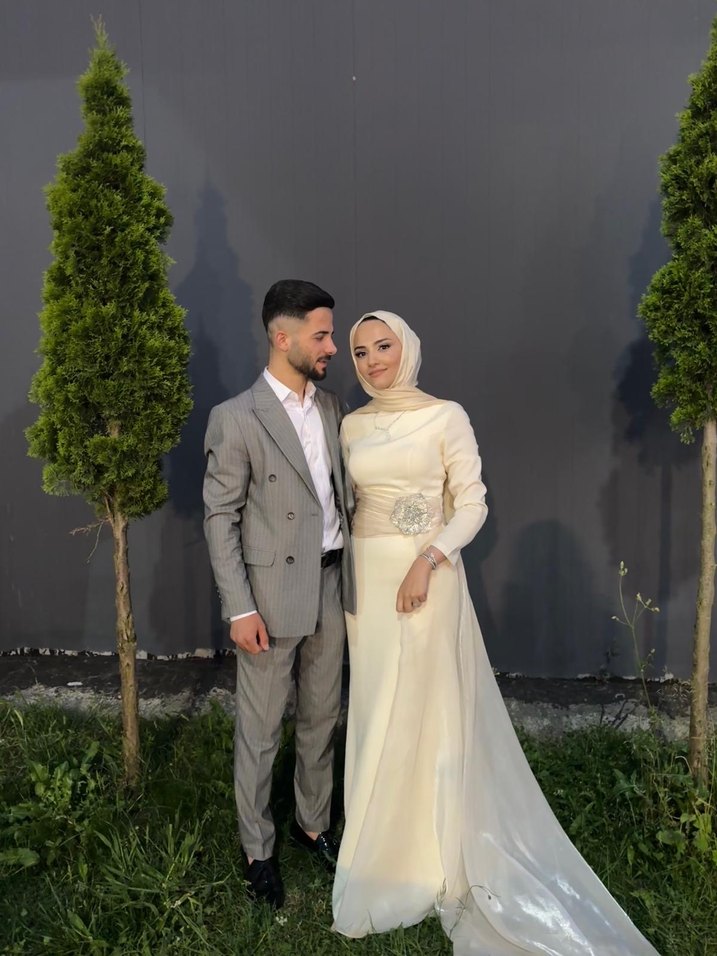 Uzun Kollu Beyaz Tesettür Nişan Elbisesi