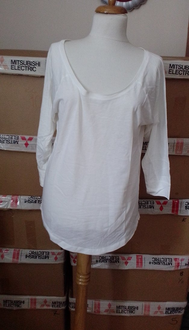 Pamuk kumaştan, uzun kollu ve bol kesim beyaz hamile tişörtü, günlük rahatlık için ideal. sorunsuz iç gösterir /L beden oxxo marka