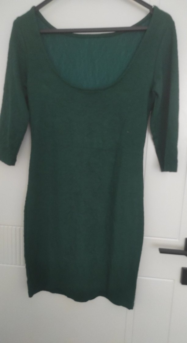 Bu dar kesim midi elbise, uzun kollu ve bisiklet yaka olup yumuşak triko kumaştan yapılmıştır. Koyu yeşil renkte, günlük sokak stiline uygundur.
