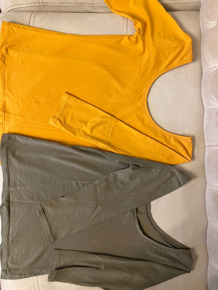 Penye sırt detaylı bluz. İkisini beraber vereceğim sarı ve haki renklerde
