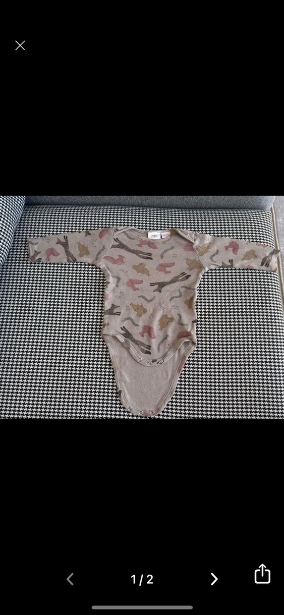 Uzun kollu, yuvarlak yaka ve düğmeli bebek body, kahverengi ve gri tonlarda hafif dinozor desenli. Zara uzun kollu zıbın