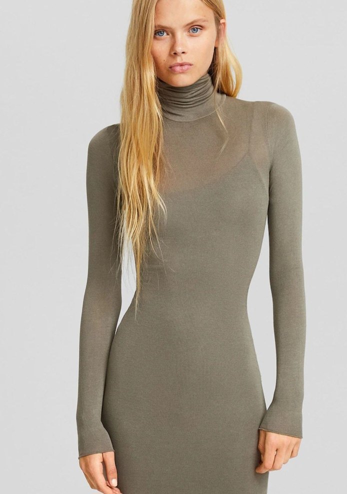 Uzun Kollu Boğazlı İnce Triko Elbise