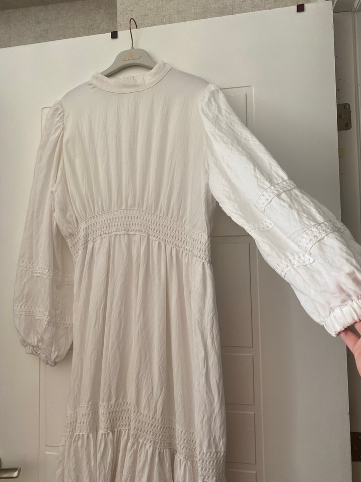 Uzun Kollu Bohem Beyaz Keten Elbise(butik ürünü)
