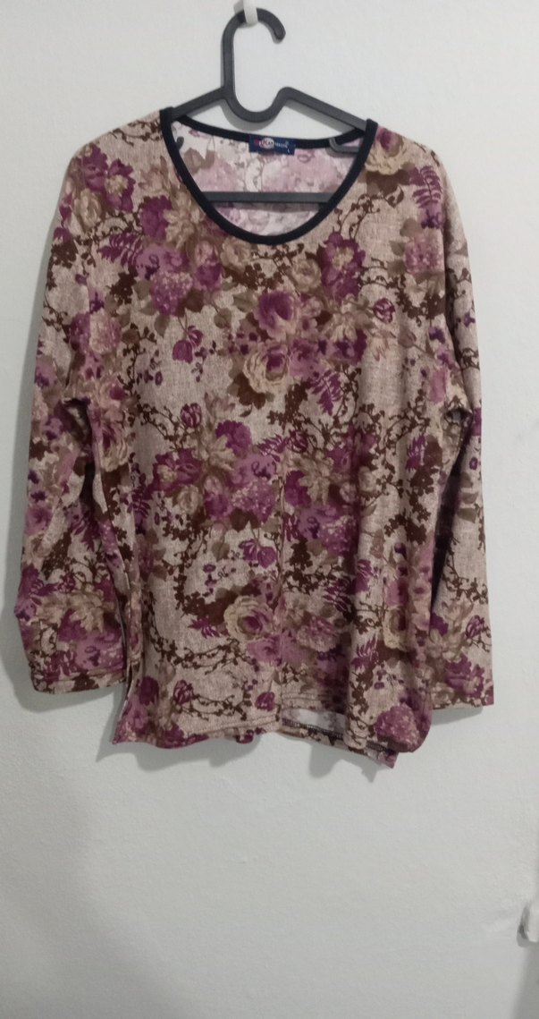 Uzun kollu, yuvarlak yakalı, yumuşak sentetik kumaştan, bol kesim ve düğmeli bu bluz; pastel mor çiçek desenleriyle bohem ve rahat bir tarz sunar.