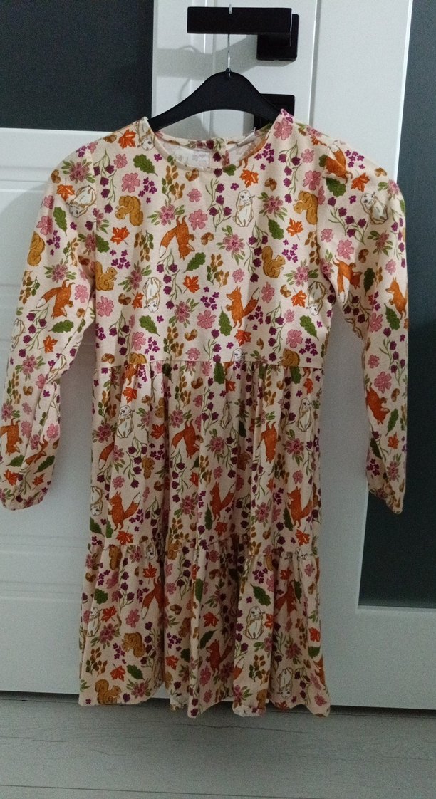 Pastel çok renkli çiçek desenli, uzun kollu, pileli etekli, bol kesim ve yuvarlak yakalı kız elbisesi. Yumuşak sentetik kumaştan yapılmıştır 9-10 yaş 134-140cm