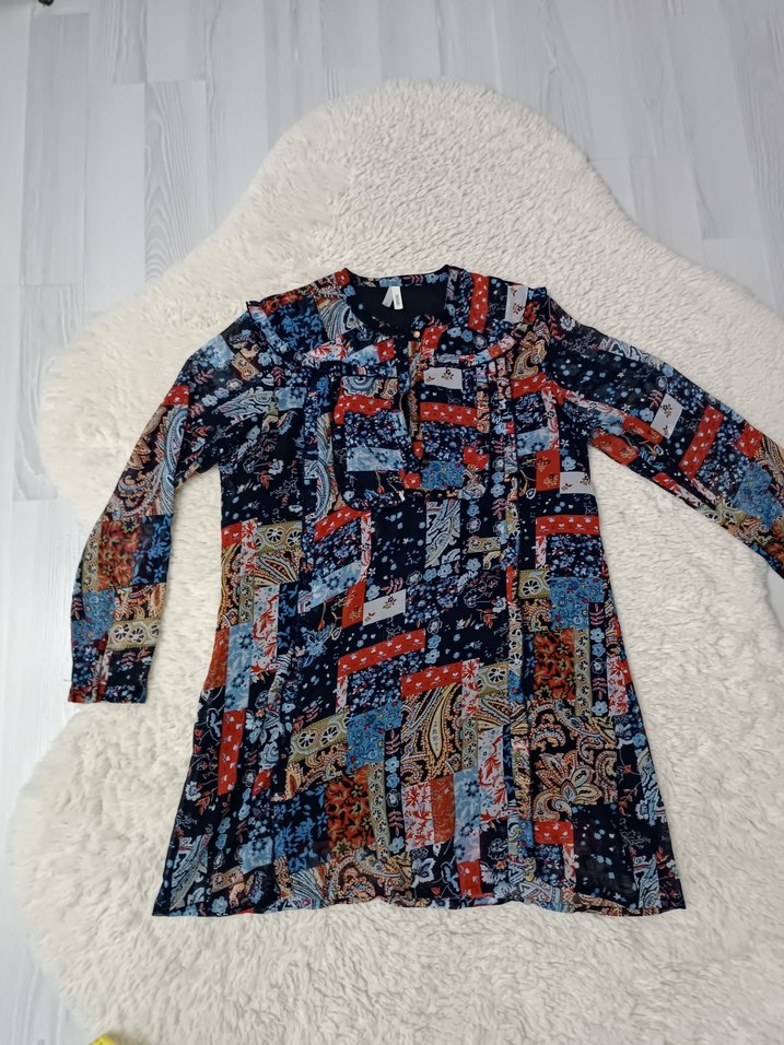 Uzun Kollu Bohem Desenli Tunik