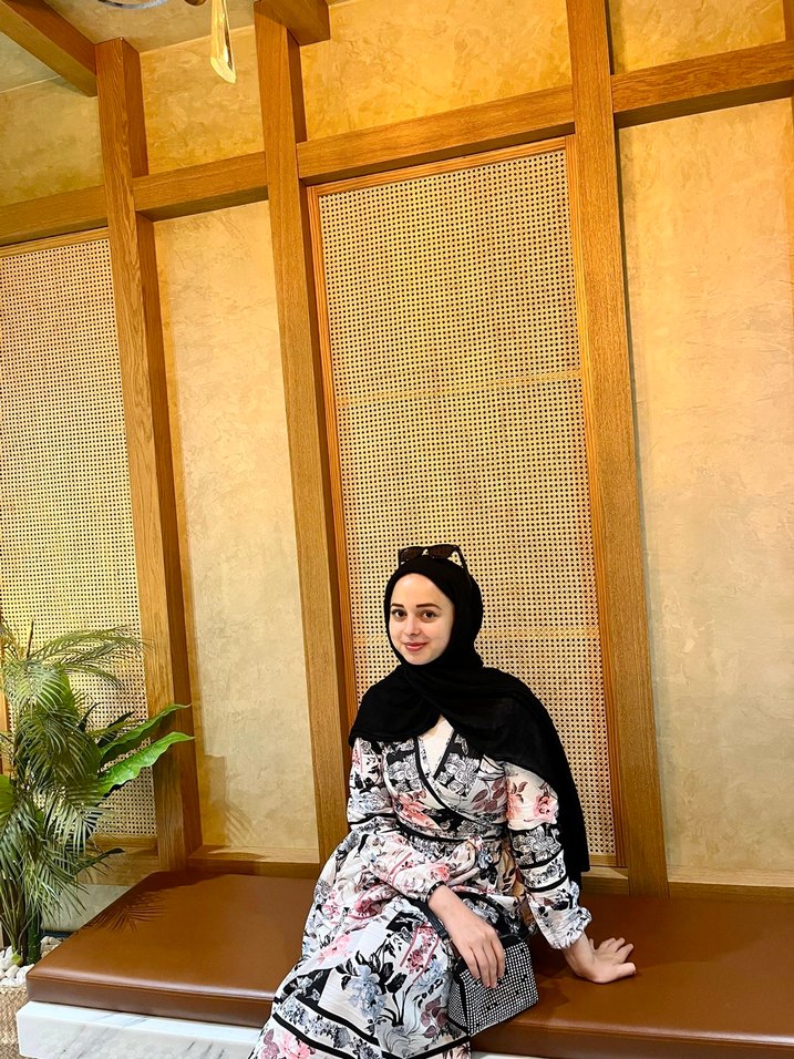 Etnik desenli, drapeli, bol kesim uzun siyah elbise, uzun kollu ve yüksek yakalı, yumuşak sentetik kumaştan üretilmiştir. Günlük kullanım için uygundur.