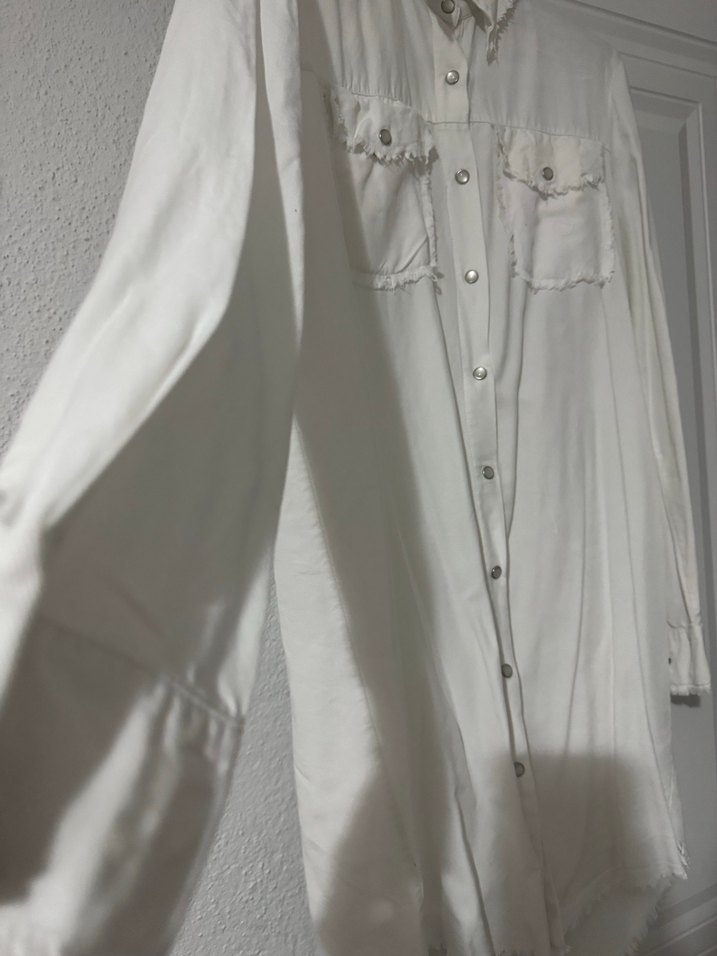 Beyaz uzun kollu, keten kumaştan yapılmış, bol kesim ve yakalı kadın gömleği. Düğmeli ve iki ön cepli, Parisli bohem stilini yansıtıyor. Günlük kullanıma uygun.