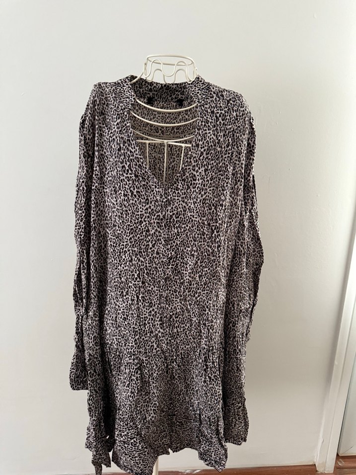 Leopar desen uzun kollu ve bol kesim V yaka tunik. Elbise olarak da kullanılabilir.